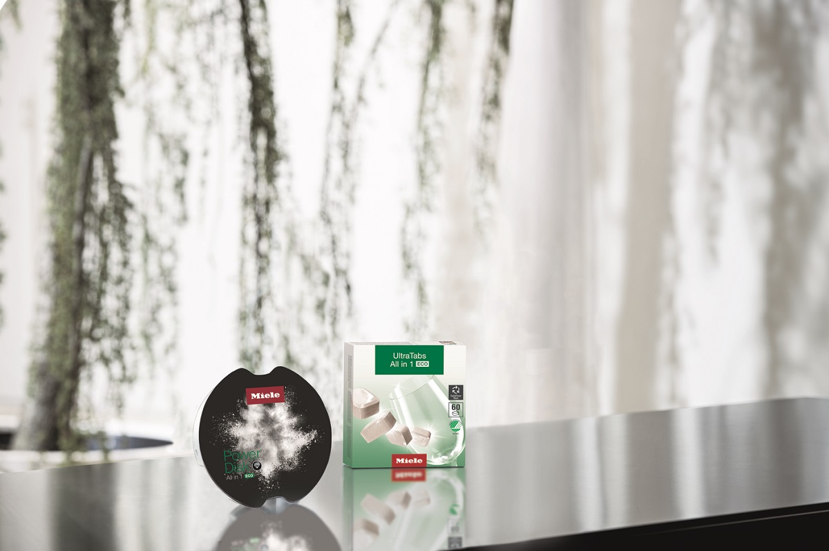 Auch bei den Reinigungs- und Pflegeprodukten können die Kundinnen und Kunden auf Artikel zurückgreifen, die nicht nur speziell auf ihre Miele-Geräte abgestimmt, sondern auch umweltschonend verpackt sind. Zum Beispiel hat Miele den Behälter der PowerDisk für den Geschirrspüler auf 100 Prozent recyceltes Plastik umgestellt. Auch die Verpackungen der übrigen Spül- und Waschmittelbehältnisse sind zum großen Teil neugestaltet und bestehen jetzt aus recyceltem Material.