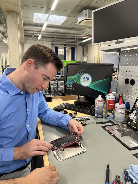 Bei AfB können sich die Partner auf absolute Datensicherheit während des gesamten Aufbereitungsprozesses verlassen. Mit der professionellen Software Blancco Mobile Diagnostic and Erasure löscht das nach ISO 27001, 9001 und 14001 zertifizierte Unternehmen die Daten nach dem Wareneingang. Falls erforderlich, werden einzelne Komponenten ausgetauscht – sofern möglich. Probleme treten häufig bei verklebten oder gelöteten Modellen auf. Auch die Teilekopplung, bei der beispielsweise bei iPhones nur Ersatzteile mit einer bestimmten Seriennummer akzeptiert werden, erschwert die Wiederaufbereitung. Das kürzlich von der EU verabschiedete Gesetz „Recht auf Reparatur“ soll Reparaturen generell erleichtern. Daniel Büchle sieht hier aber noch Handlungsbedarf: „Ein Sonderfall sind leider die Geräte von Apple. So soll das bisherige Pairing von Bauteilen zwar aufgehoben werden. Doch solange die als Diebstahlschutz gedachte iCloud-Sperre auch bei verlorenen Geräten bestehen bleibt, müssen diese weiterhin verschrottet werden. Das ist sehr schade, denn es sind häufig neuwertige, stark nachgefragte Modelle. Hier wäre es wichtig, eine Lösung zu finden diese Sperre aufzuheben, beispielsweise wenn ein Smartphone über eine längere Zeit in einem Fundbüro liegt. Dann könnten wir deutlich mehr hochwertige Smartphones wieder in den Kreislauf zurückgeben und damit den ökologischen Fußabdruck verkleinern.“