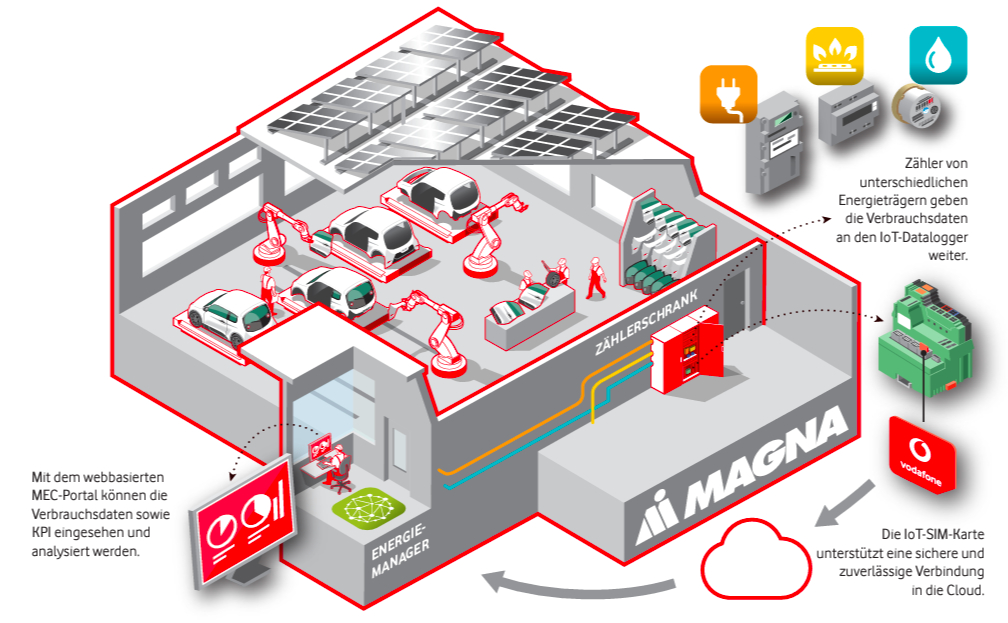 Die Produktion und Entwicklung von Fahrzeugteilen verbraucht viel Energie – aber wie und wo genau? Genau das wollte der Automobilzulieferer Magna mithilfe des IoT-Netzes von Vodafone Business herausfinden, um das Energiemanagement transparenter und effektiver zu gestalten.