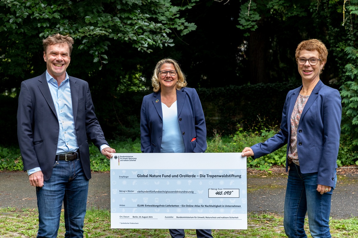 Die Bundesregierung hat sich mit Unterzeichnung der New Yorker Walderklärung 2014 und der Amsterdamer Erklärung von 2015 verpflichtet, entschieden gegen die Entwaldung in Lieferketten vorzugehen. Dass das neue Projekt auf diese Initiativen einzahlt, würdigte Bundesministerin Schulze mit der persönlichen Übergabe der Projektbewilligung heute in Bonn, im Rahmen derer sie betonte: „Wälder speichern große Mengen Kohlenstoff. Sie sind die Lunge unseres Planeten. Die fortschreitende globale Entwaldung trägt daher maßgeblich zum Klimawandel bei. Weltweit wird Wald gerodet, um Platz für landwirtschaftliche Flächen zu schaffen. Die dort produzierten Nahrungsmittel landen über teils komplizierte Umwege auch auf unseren Tellern. Das nun geförderte Projekt wird deutschen Unternehmen Möglichkeiten aufzeigen, ihre Lieferketten entwaldungsfrei zu gestalten und so zum Kampf gegen den Klimawandel beizutragen.“
