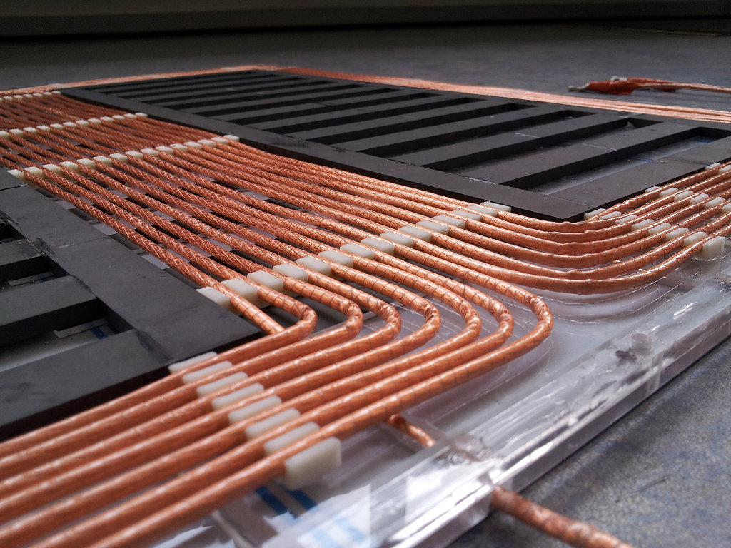 Forscher am Fraunhofer-Institut für Windenergie und Energiesystemtechnik IWES in Kassel haben solche induktiven Ladesysteme nun kostengünstiger gestaltet. "Wir nutzen bewusst Standardkomponenten, die bereits auf dem Massenmarkt verfügbar sind", erläutert Dipl.-Ing. Marco Jung, stellvertretender Abteilungsleiter für Stromrichtertechnik am IWES. Zudem verwenden die Forscher Spulensysteme, die mit weniger Ferritplatten auskommen. Die Platten dienen zur Führung und Abschirmung des magnetischen Feldes und sind aufgrund des enthaltenen Eisenoxids recht schwer. Darüber hinaus sind sie teuer. Durch die Reduktion des Ferritmaterials werden die Spulen nochmals leichter und preiswerter.