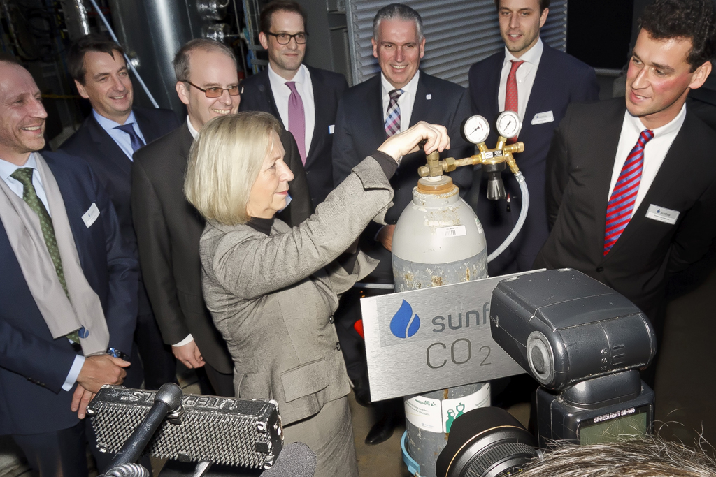 Das sunfire-Konzept basiert auf der so genannten „Power-to-Liquids- Technologie“. Das dreistufige Verfahren mit einem Systemwirkungsgrad von etwa 70 Prozent ermöglicht es, CO2, das unter anderem bei der konventionellen Nutzung fossiler Energieträger entsteht, zu synthetischen Kraftstoffen für Autos oder Flugzeugen aufzubereiten und damit doppelt zu nutzen. Dadurch ergibt sich sowohl eine deutliche CO2-Einsparung, als auch das Potential, andere Emissionen und Ressourcen einzusparen.
