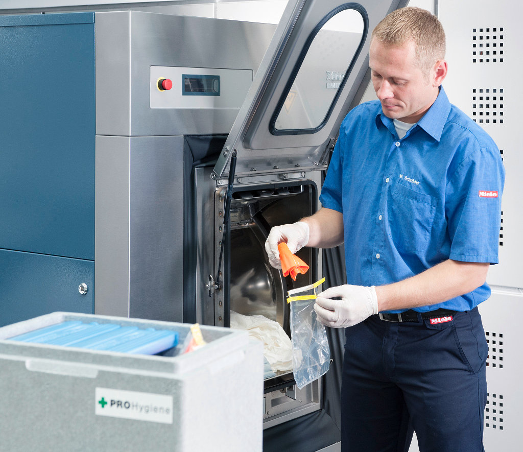 Wäsche in Krankenhäusern, Senioreneinrichtungen oder im Rettungswagen darf keine Keime übertragen. Zuverlässigen Schutz gibt es aber nur dann, wenn desinfizierende Waschverfahren und -mittel aufeinander abgestimmt sind. Ob eben dieses Zusammenspiel einwandfrei funktioniert, überprüft das neue Testverfahren „ProHygiene“. Ab 1. Dezember 2014 bietet es der Kundendienst von Miele Professional im Rahmen der Wartungen von Wäschereimaschinen an.