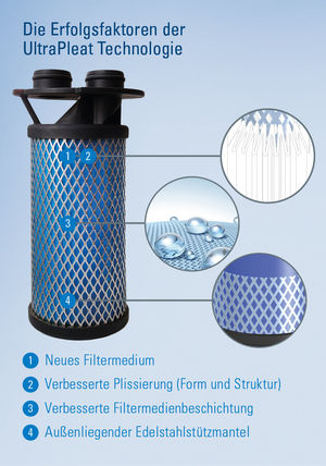 Mit dem umfassenden Programm der Druckluftfilter, Adsorptions- und Kälte-Drucklufttrockner, die auf der Hannover Messe ComVac vom 13. bis 17. April gezeigt werden, unterstreicht Donaldson die Entwicklungserfolge, die zu erheblichen Energieeinsparungen bei der Erzeugung und Nutzung von Druckluft führen. So ist es z. B. gelungen den Differenzdruck, welcher beim Filtern von Druckluft und Gasen entsteht, durch die UltraPleat Filtrationstechnologie um 50 Prozent im Vergleich zur vorhergehenden Baureihe zu reduzieren. Dieser außerordentlich niedrige Wert hat großen Einfluss auf den einzusetzenden Energiebedarf von Kompressoren.