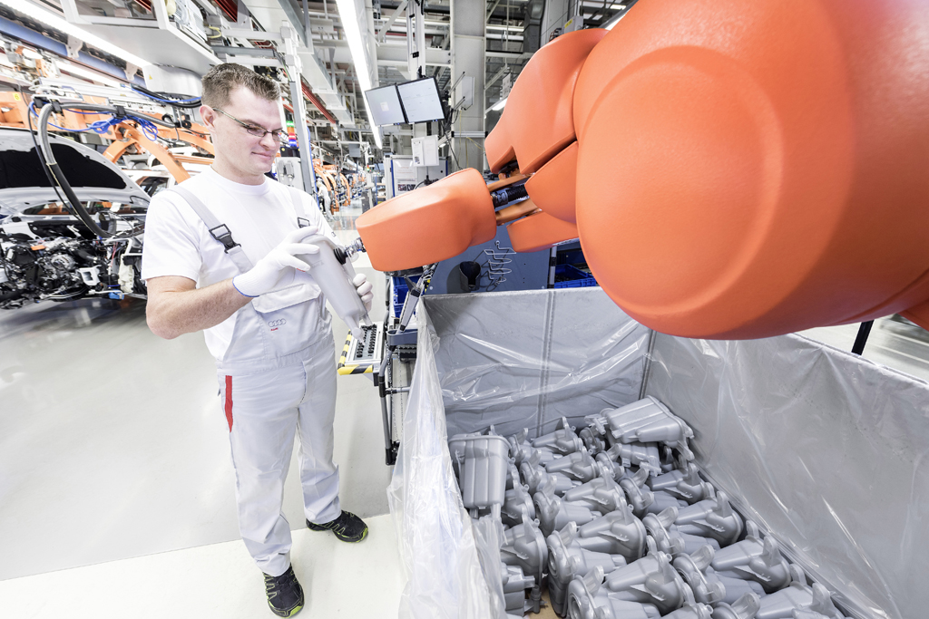 Roboter unterstützt Audi-Mitarbeiter