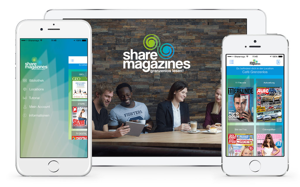 Das norddeutsche Start-up-Unternehmen sharemagazines bietet über die gleichnamige App für iOS- und Android-Geräte einen digitalen Lesezirkel an, der in verschiedensten Locations verfügbar ist – darunter Friseure, Cafés, Restaurants, Hotels, Arztpraxen und Kliniken. Über die App können Leser von ihrem eigenen Smartphone oder Tablet aus kostenlos auf eine Bibliothek mit über 140 deutschsprachigen Magazinen und Tageszeitungen zugreifen.