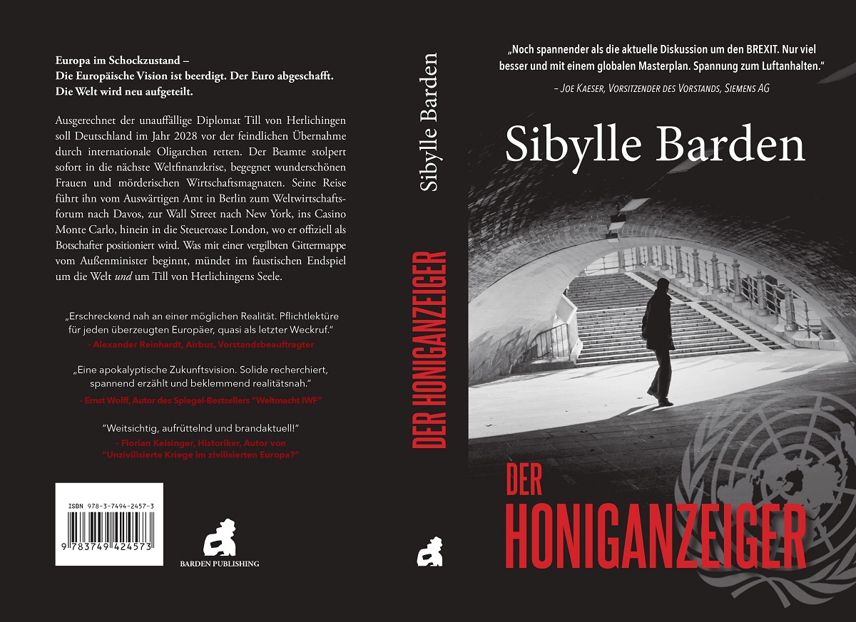 Sibylle Barden ist Publizistin. In ihrem 2019 erschienenem Wirtschaftsthriller „Der Honiganzeiger“ zerstört ein tödliches Virus erst Leben, dann unsere Weltordnung. Europa zerbricht, und im Jahr 2028 teilt sich die internationale Oligarchie die Welt untereinander auf. Das Buch ist zu erwerben bei genialokal.de, dem Dienst, der den lokalen Buchhandel unterstützt.
