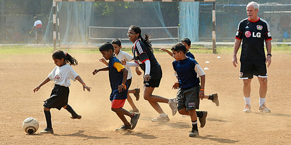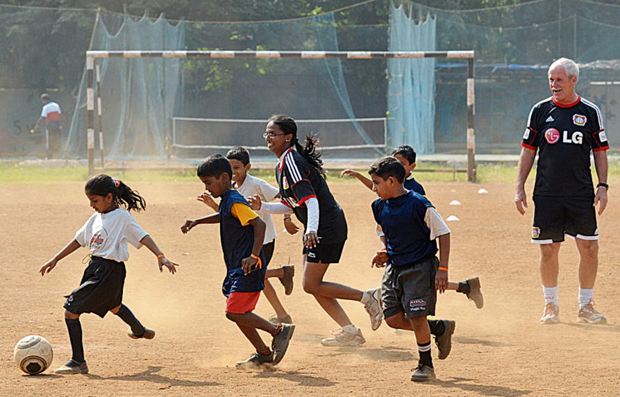 Mumbai ist mit geschätzten 18 Millionen Einwohnern die bevölkerungsreichste Stadt Indiens. Für viele Kinder und Jugendliche gibt es nur begrenzten Zugang zu Bildung und Orte, an denen sie spielen und sportlichen Aktivitäten nachgehen können. Der Sportplatz der Don Bosco High School im Süden der Stadt war jedoch ein idealer Trainingsort für knapp 30 junge Männer und Frauen, die an dem einjährigen Ausbildungsprogramm der Football Club Social Alliance teilgenommen haben. Dabei wurden sie von Bayer 04 Leverkusen-Trainern und Kollegen des englischen Klubs Queens Park Rangers zu sogenannten Young Coaches ausgebildet. Hilfsorganisationen vor Ort informierten sie zudem über die Themen „Kinderrechte“ und „Hilfsmöglichkeiten bei Missbrauch“ sowie „Gesundheit und Hygiene“.