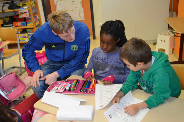 Jörg Kappenhagen ist im Rahmen der Initiative ,Bayer 04 macht Schule‘ schon in vielen Klassen zu Gast gewesen und hat erlebt, was der Besuch bei den Kindern bewirkt. „Die Idee, ihnen gesunde Ernährung näherzubringen, lässt sich viel besser transportieren, wenn man den Kindern sagen kann: Wenn ihr so gute Fußballer wie Simon Rolfes oder Stefan Kießling werden wollt, gehört da auch eine gesunde Ernährung dazu. Dafür bringen wir dann zum Beispiel Ernährungspläne der Spieler mit“, erklärt Kappenhagen. Der Sportwissenschaftler betreut seit 2005 den Bereich bei Bayer 04, in dem das soziale Engagement des Fußballclubs angesiedelt ist. Nach dem Motto „Wir (04) helfen“ kümmert sich das Team um die Auswahl und Umsetzung von nachhaltigen Projekten – weltweit, aber vor allem in der Region.