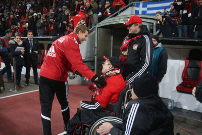Ein Beispiel für das vereinsübergreifende Engagement ist auch das Benefizturnier, das Bayer 04 im Rahmens des Projektes „Einfach Fußball“ organisierte. Vor über 1.000 Zuschauern nahmen an dem Wettkampf neben acht Jugend-Mannschaft mit geistig Behinderten unter anderem die Bayer 04-Traditionsmannschaften und die Werkself-Bundesliga-Fußballerinnen teil. Der Erlös von 4.000 Euro ging an zwei Förderschulen in der Region, mit denen Bayer 04 kooperiert. Mit diesem von der Bayer AG initiierten Projekt werden Partnerschaften zwischen Fußballvereinen und Förderschulen unterstützt. In diesem Kontext ist auch eine Aktion von Bayer 04 Leverkusen anlässlich des DFB-Achtelfinal-Spiels gegen den 1. FC Kaiserslautern zu verstehen. Denn: Die Einlaufkinder für die Profis beider Mannschaften waren ganz bewusst geistig und körperlich behinderte Kinder und Jugendliche.