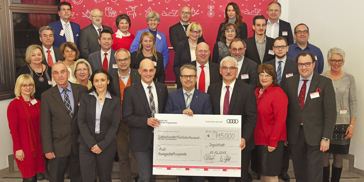 Seit über 40 Jahren ruft der Audi-Betriebsrat bereits die Belegschaft zur traditionellen Weihnachtsspende auf, die der damalige Betriebsratsvorsitzende Fritz Böhm ins Leben gerufen hatte. Seitdem brachten die Audianer rund 17 Millionen Euro für den guten Zweck zusammen und unterstützen damit karitative Einrichtungen rund um den Heimatstandort Ingolstadt.