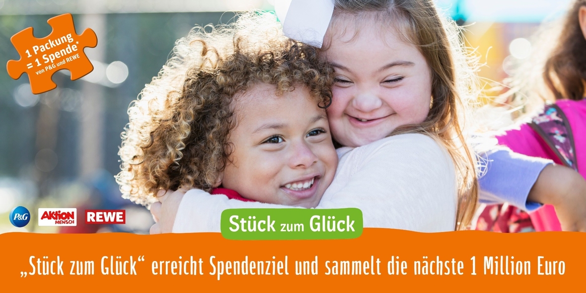 Ein Spielplatz, auf dem Kinder mit und ohne Behinderung gemeinsam spielen können: Das ist die Mission von „Stück zum Glück“, einer gemeinsamen, deutschlandweiten Spendenaktion von Procter & Gamble (P&G), REWE und der Aktion Mensch. Jetzt hat „Stück zum Glück“ das Spendenziel von einer Million Euro erreicht und macht weiter: Innerhalb von drei Jahren möchten die Projektpartner eine weitere Million Euro Spenden sammeln.