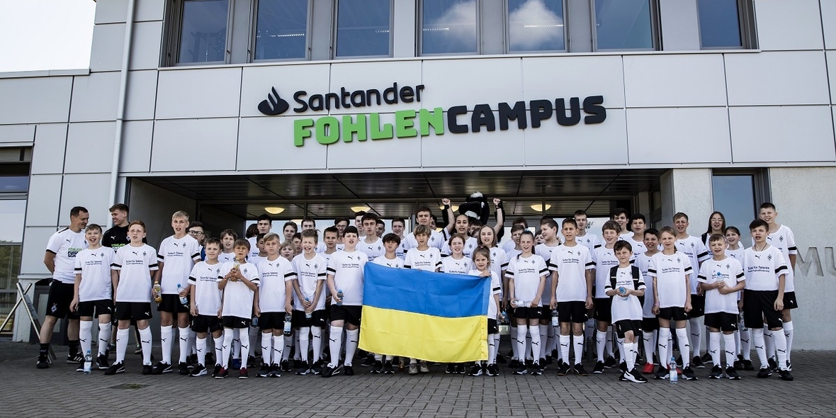 Gemeinsam kicken und die Sorgen für einen Moment vergessen: Dazu lud auch Borussia Mönchengladbach in die FohlenFußballschule ein. Borussia-Maskottchen „Jünter“ begrüßte 72 Teilnehmer. Bevor sie gemeinsam das Spiel der Borussia gegen die TSG Hoffenheim live im Stadion verfolgten, ging es in Trikots und Fußballschuhen der Borussia selbst auf den Trainingsplatz.