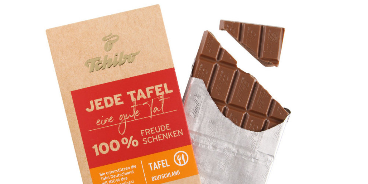 Außerdem unterstützen Tchibo Kunden mit dem Kauf einer Weihnachtsschokolade die Tafel Deutschland und bereiten bedürftigen Menschen Freude: Tchibo spendet den vollen Verkaufspreis (2,50 Euro) an die gemeinnützige Organisation, die von dem gesammelten Geld Lebensmittel für bedürftige Menschen erwirbt. Die Tchibo Weihnachtsschokolade ist in den Filialen und online erhältlich.