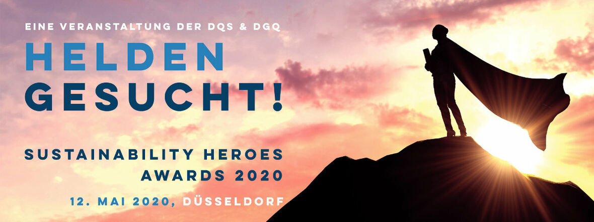 Um aktives Engagement in der Wirtschaft weiter anzuspornen, zeichnen die DQS und DGQ Vorreiter im Bereich Nachhaltigkeit mit den Sustainability Heroes Awards aus. Verliehen werden die Preise im Rahmen der Sustainability Heroes Konferenz am 12. Mai 2020 im Maritim Hotel Düsseldorf. Bis zum 31. März 2020 können sich Unternehmen noch für die Sustainability Heroes Awards anmelden. Die Awards sind eine Auszeichnung für Unternehmen, die im Bereich Nachhaltigkeit eine führende Rolle einnehmen. Die Bewerbung ist kostenfrei – eine Teilnahmegebühr fällt nur an, wenn Sie an der Konferenz teilnehmen möchten.