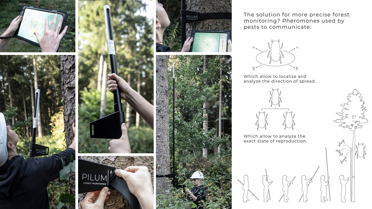 Die vom Industriedesigner Konstantin Wolf als Masterthesis an der Muthesius Kunsthochschule Kiel entwickelte Sonde PILUM zur Langzeitüberwachung von Wäldern wird mit dem James Dyson Award 2023 in Deutschland ausgezeichnet. PILUM beschreibt einen konzeptionellen Ansatz zum besseren Umgang mit Borkenkäfern in Wäldern durch die Analyse von Pheromonen und Harzpartikeln in der Luft, die während des Fortpflanzungszyklus des Käfers produziert werden.