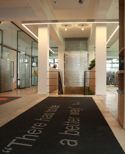 Der Standort ist so konzipiert, dass sich die Mitarbeiter in Krefeld wie zuhause fühlen. Dabei können sie selbst flexibel entscheiden, ob ihnen nach Kommunikation, nach entspanntem Arbeiten oder fokussierter Konzentration ist. Die durch die unterschiedliche Gestaltung der einzelnen Räume und Einheiten entstandene Heterogenität im Gesamtbild ist gewollt: „Interface ist nicht einfarbig, nicht regelmäßig, nicht berechenbar und nicht langweilig – genauso wie wir dies aus unserer natürlichen Umgebung kennen.“ Die positiven Effekte, die das Raumdesign auf die Mitarbeiter hat, werden aktuell ausgewertet.