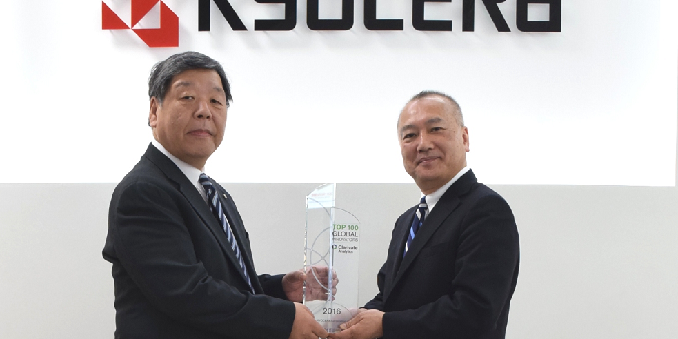 Die Kyocera Corporation zählt auch 2016 zu den Top 100 Global Innovators. Die Liste der weltweiten Innovationsführer wird jährlich von Clarivate Analytics, einem internationalen Informationsdienstleister, herausgegeben. Insbesondere bei der Rate der erfolgreichen Patenterteilungen und der globalen Reichweite schnitt Kyocera, das bereits im dritten Jahr in Folge ausgezeichnet wurde, herausragend ab. Die Überreichung der Trophäe erfolgte Anfang dieser Woche im Hauptsitz des Unternehmens in Kyoto, Japan.