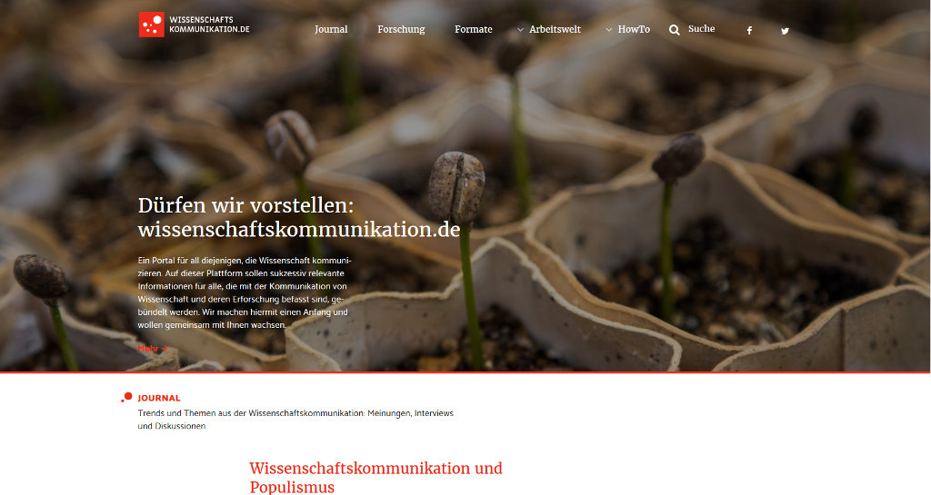„Die Wissenschaftskommunikation hat sich in den vergangenen Jahren enorm entwickelt und professionalisiert“, sagt Markus Weißkopf, Geschäftsführer von Wissenschaft im Dialog. „Mit dem Portal haben wir nun neben dem jährlichen Branchentreff Forum Wissenschaftskommunikation einen virtuellen Ort geschaffen, an dem Interessierte sich jederzeit informieren, austauschen und selbst einbringen können.“