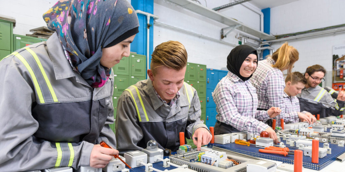 Mit der Initiative „Start in den Beruf“ werden Jugendliche gefördert, die bisher keine Lehrstelle gefunden haben und denen die Voraussetzung für die erfolgreiche Aufnahme einer Berufsausbildung möglicherweise noch fehlt. Dieses Jahr nahmen bei Evonik im Industriepark Wolfgang zwanzig Jugendliche an der Qualifizierungsinitiative teil, davon zehn Geflüchtete.