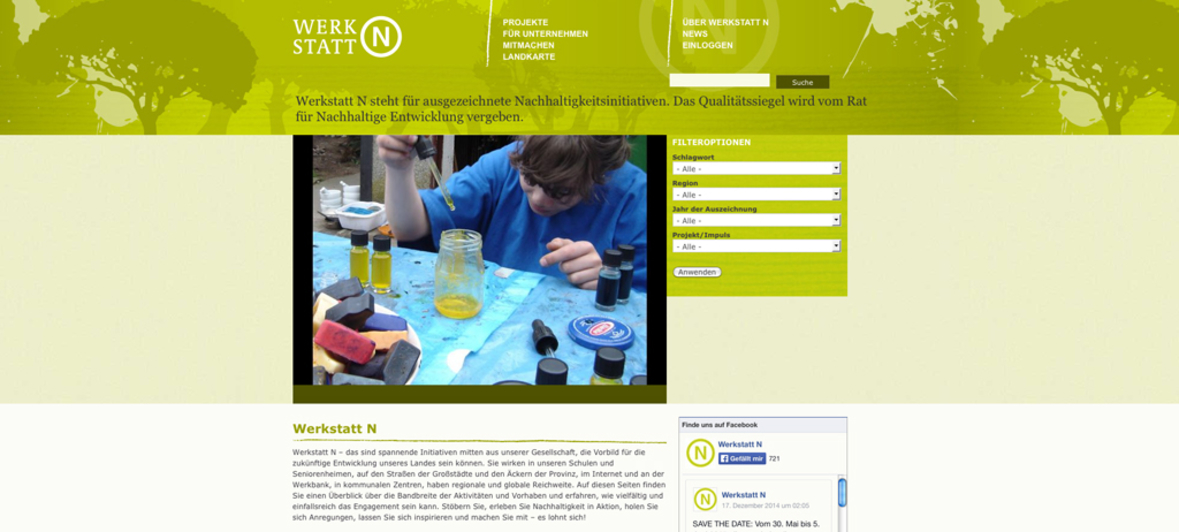 Für besonders nachhaltiges Handeln verleiht der Rat für Nachhaltige Entwicklung jährlich sein Qualitätssiegel „Werkstatt N“. In diesem Jahr zeichnet er mit dem Label 100 nachhaltige Projekte und zukunftsweisende Initiativen im gesamten Bundesgebiet aus, die Ökonomie, Ökologie und Soziales kreativ miteinander verbinden.