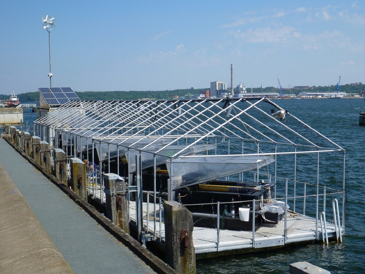 Herzstück des Projekts „Klimafreundliche Offshore-Produktion von Algenbiomasse“ (Climate-Friendly Offshore Production of Algal Biomass, CliPA) ist eine Pilotanlage in der Eckernförder Bucht.