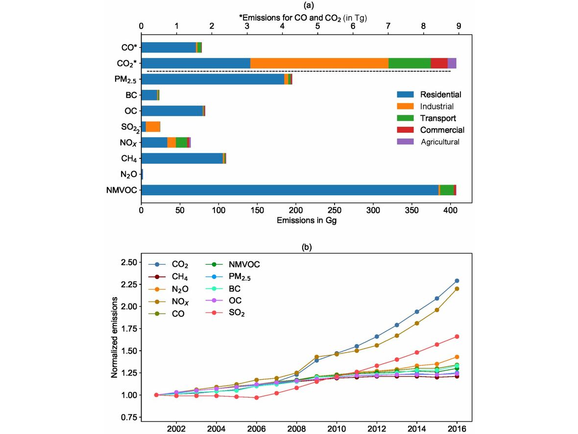 „Nepal deckt seinen Energiebedarf zu 88 Prozent mit Biomasse, vor allem mit Holz. Dadurch entstehen erhebliche Mengen von Feinstaub und Ozonvorläufern, die Auswirkungen haben auf das Klima, die Luftqualität, die menschliche Gesundheit, Ernteerträge und die Kryosphäre, also die Eisgebiete auf dem Planeten. Mit dem Emissionsinventar können wir die Hauptverursacher der Emissionen, den Anteil einzelner Quellen oder Sektoren sowie kritische Regionen identifizieren“, erläutert Leitautor Pankaj Sadavarte (SRON Netherlands Institute for Space Research), der als Postdoktorand amIASS an der Studie arbeitete. Die Forscher erfassten Emissionen aus dem Brennstoffverbrauch von Privathaushalten, Industrie, Landwirtschaft, dem Transportsektor und weiteren Wirtschaftszweigen für die Jahre 2001 bis 2016.