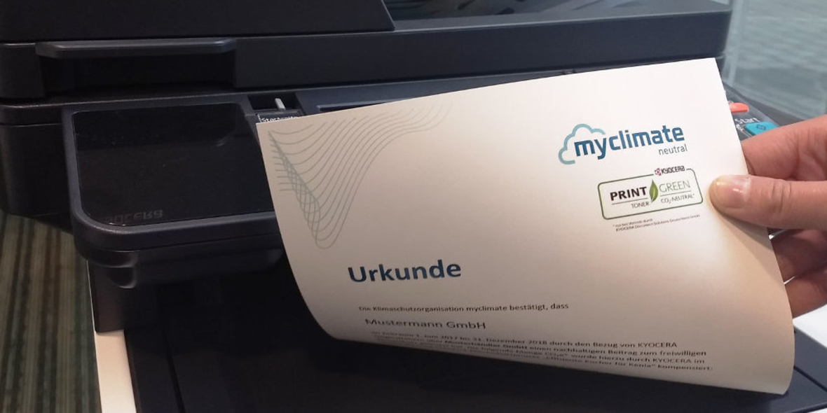 Im Rahmen des Programms „KYOCERA PRINT GREEN“ drucken KYOCERA-Kunden besonders umweltfreundlich. Dies liegt neben den ressourcenschonenden Systemen vor allem am Toner: Diesen bietet der Hersteller nämlich klimaneutral an. Gemeinsam mit den Kunden konnten so bislang über 135.000 Tonnen CO2 kompensiert werden.