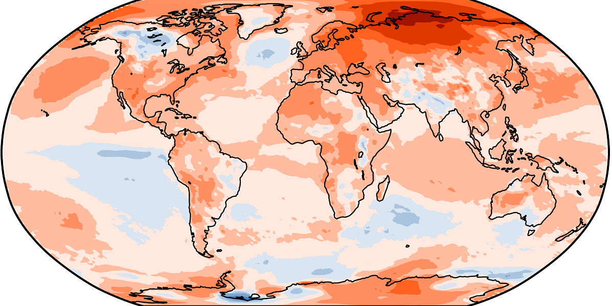 Allgemein herrschten 2020 in nahezu allen Regionen der nördlichen Halbkugel überdurchschnittliche Temperaturen, außer in einem Areal mitten über dem Nordatlantik. In Teilen der Südhalbkugel hingegen herrschten unterdurchschnittliche Temperaturen, vor allem über dem östlichen Pazifik nahe am Äquator, was mit kühlenden La Niña-Bedingungen, die sich in der zweiten Jahreshälfte entwickelten, zusammenhängt. Das 2020 gleichauf mit 2016 liegt, ist daher besonders beachtenswert. Obwohl La Niña einen kühlenden Effekt hatte, wurde der Rekord eingestellt. 2016 hingegen hatte eine wärmenden El Niño-Effekt am Anfang seines Rekordjahres.
