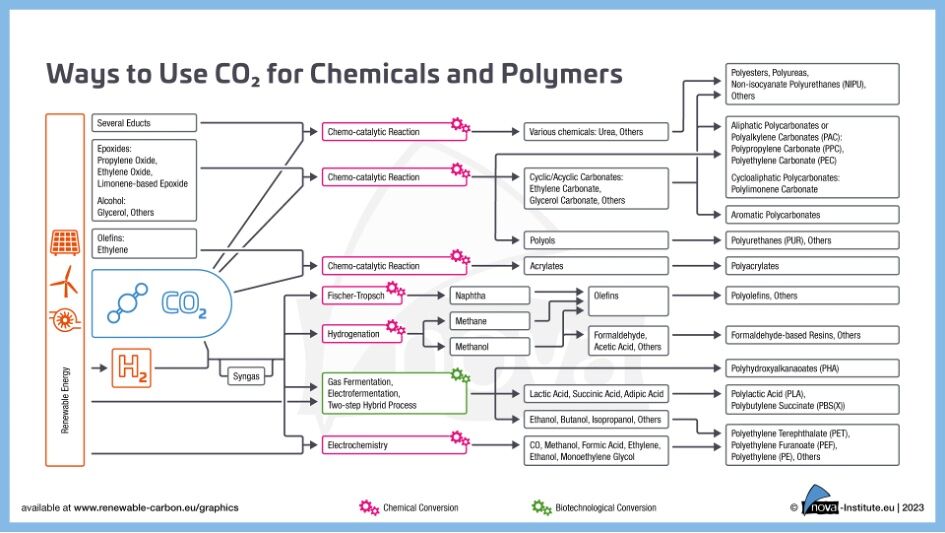 Ein kürzlich erschienener Bericht des nova-Instituts zur Nutzung von CO2 für Chemikalien, synthetische Kraftstoffe, Polymere, Proteine und Mineralien gibt einen tiefen und umfassenden Einblick in sich entwickelnde Technologien, Trends und den dynamisch wachsenden Markt der CO2-Capture and Utilisation (CCU).