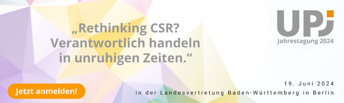 Es ist an der Zeit, Corporate Social Responsibility zu überdenken. Gemeinsam mit 200 Expert:innen aus Wirtschaft, Wissenschaft, Zivilgesellschaft und Politik sucht die UPJ Jahrestagung neue Perspektiven, loten Spielräume aus und beleuchten gute Beispiele für Unternehmensverantwortung und gesellschaftliches Engagement.