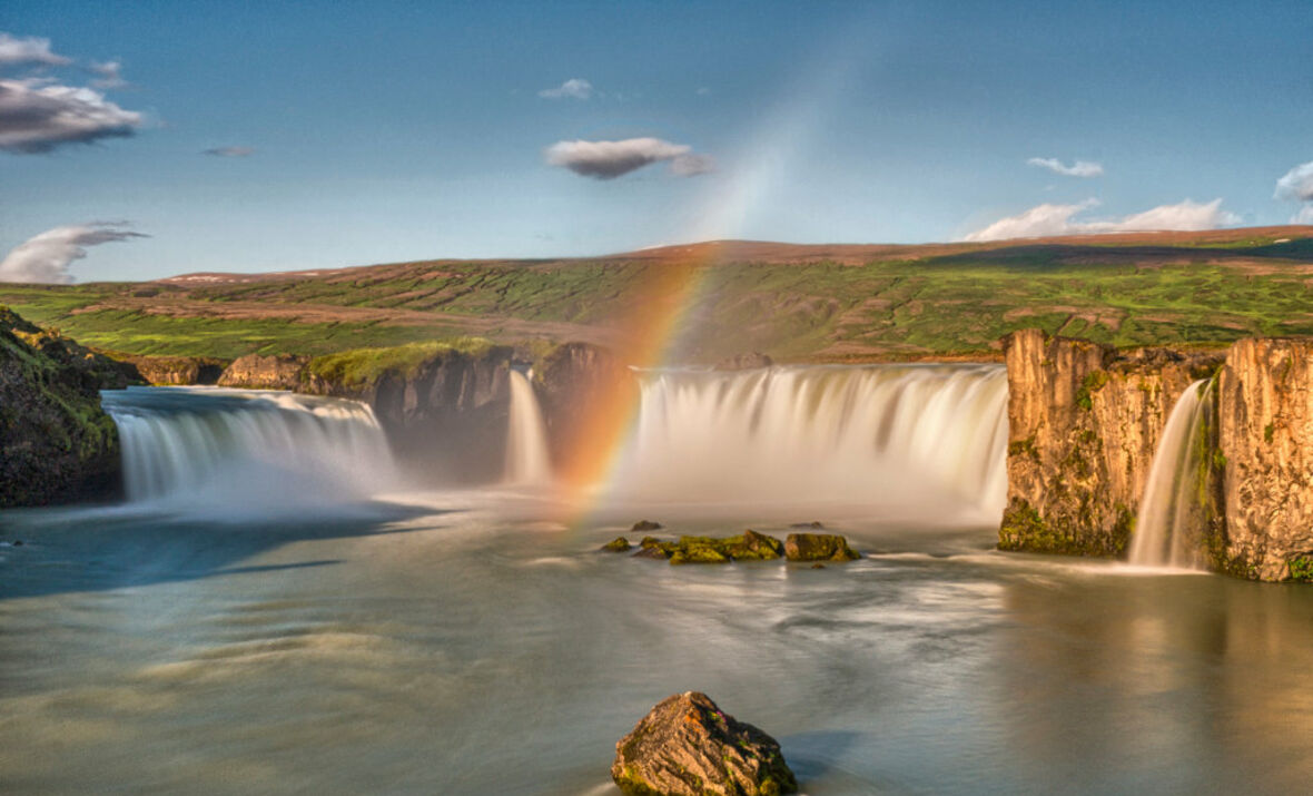Wenige Kilometer von Akureyri entfernt und unweit der Nationalstraße 1 stürzt der Goðafoss, der Wasserfall der Götter, 12 Meter in die Tiefe. In den frühen Morgenstunden, vor der Ankunft der ersten Sightseeing-Busse, lässt sich das Naturschauspiel in aller Ruhe genießen. Dann ist auch Gelegenheit für einen Spaziergang in der Umgebung mit ihren interessanten Bewohnern wie dem Regenbrachvogel oder dem Goldregenpfeifer.
