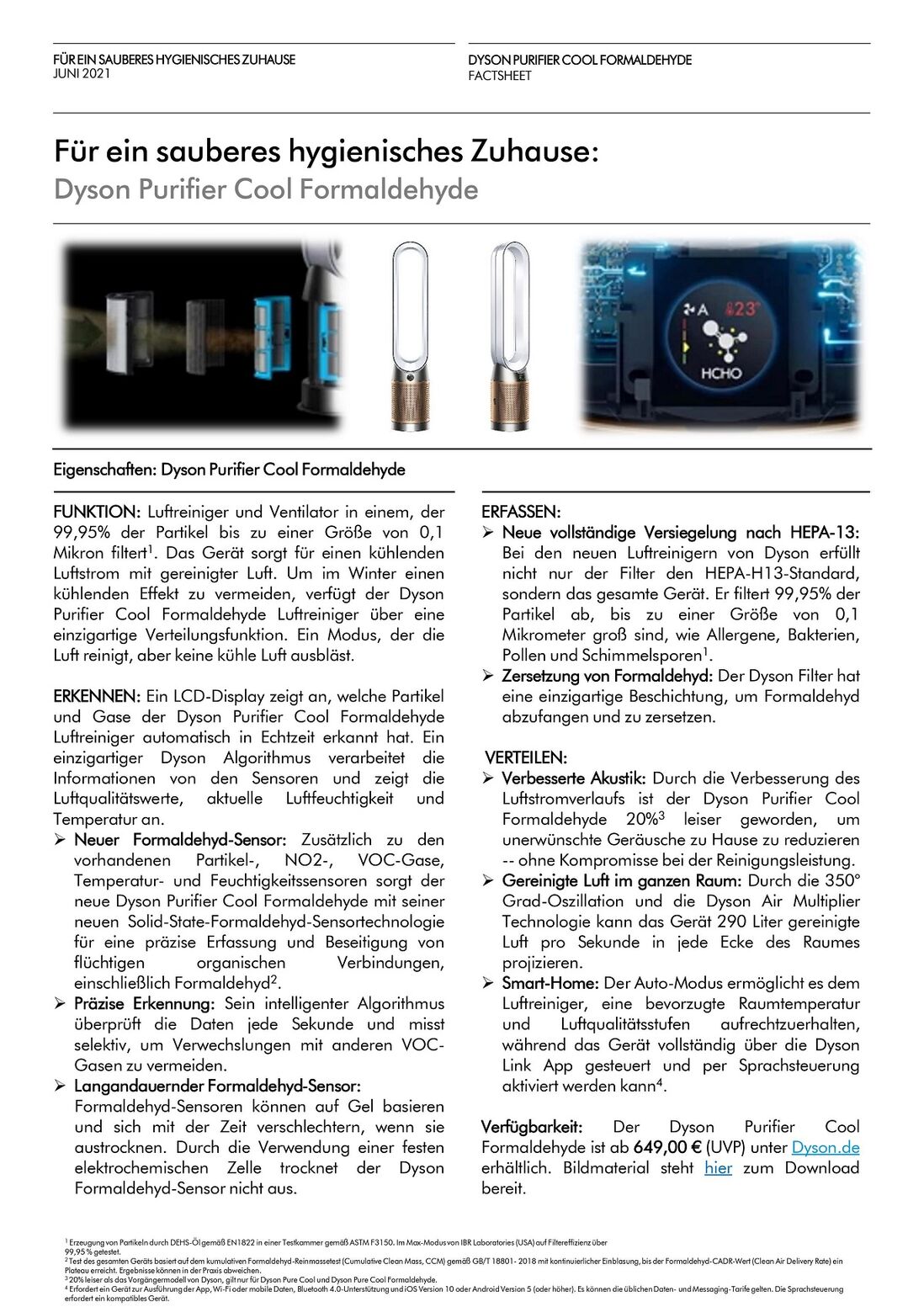 Die zweite Maßnahme ist ein Raumluftreiniger mit entsprechender Messelektronik. Dabei empfehle ich die Luftreiniger von Dyson. Beispielsweise den Dyson Purifier Cool Formaldehyde welcher ultrafeinen Staub und Allergene erfasst und sogar flüchtige organische Verbindungen, einschließlich Formaldehyd zerstört.