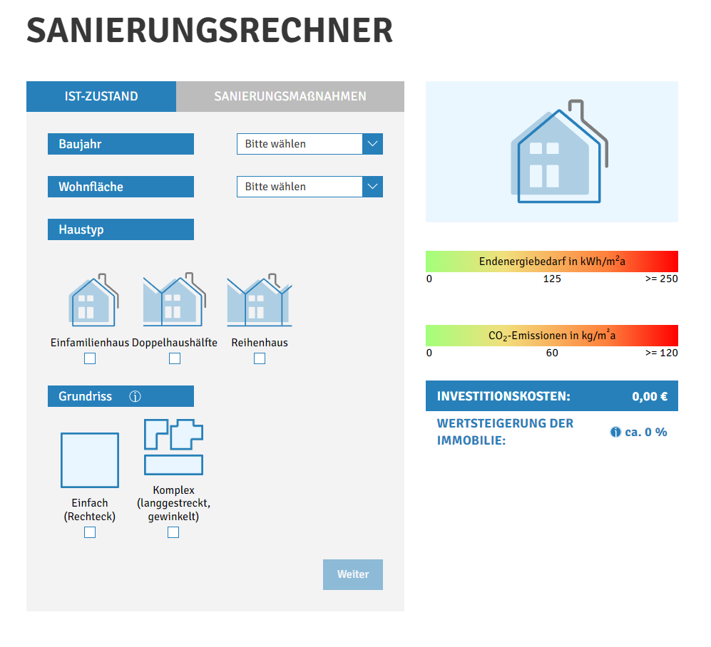 Es müssen nicht immer alle Maßnahmen gemacht werden. Von Gebäude zu Gebäude sind unterschiedliche Aktionen sinnvoll. Ein hilfreiches Tool zur Überprüfung bietet der kostenlose Sanierungsrechner.