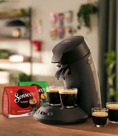 Für SENSEO® ist eine stetige Weiterentwicklung seiner Produkte entscheidend, um nicht nur das Beste für seine Kund*innen, sondern auch für die Umwelt herauszuholen. Daher wird die Kaffeepadmaschine SENSEO® Original Plus Eco jetzt noch nachhaltiger: Anstatt aus bisher 28 Prozent besteht das neue Modell aus 80 Prozent recyceltem Plastik*.