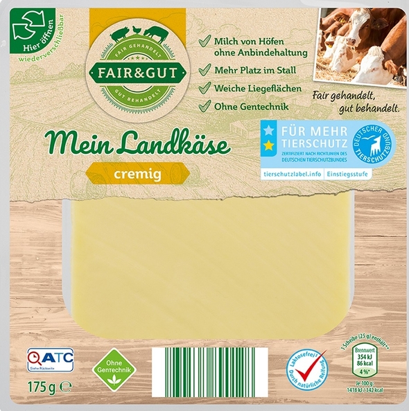 Als erster Händler in Deutschland listet ALDI SÜD einen Artikel mit dem Tierschutzlabel im Warenbereich Käse ein. Unter der Tierwohl-Eigenmarke „Fair & Gut“ bietet der Discounter drei Käsesorten an, die der Einstiegsstufe „Für Mehr Tierschutz“ des Deutschen Tierschutzbundes entsprechen. Der Landkäse ist ab Anfang November in allen ALDI SÜD Filialen erhältlich.