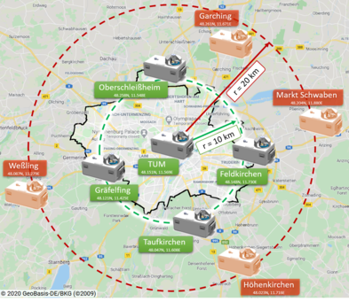 Eines der Messgeräte von MUCCnet befindet sich auf dem Stammgelände der TUM und misst die innerstädtischen Konzentrationen. Vier weitere Geräte sind an der Münchner Stadtgrenze in allen vier Himmelsrichtungen aufgestellt (Nord: Oberschleißheim, Ost: Feldkirchen, Süd: Taufkirchen und West: Gräfelfing).