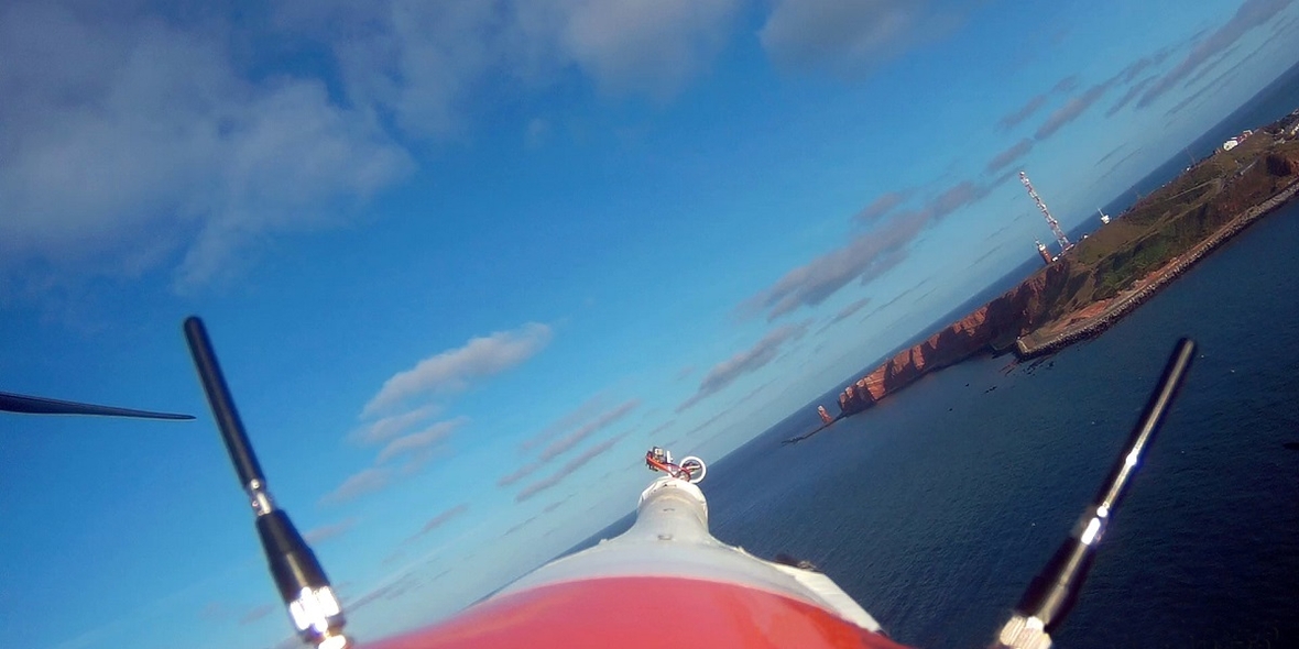 „Die Umsetzung solcher Flugkampagnen beinhaltet eine Reihe von weiteren Sicherheitsmaßnahmen, die mit engen Betriebsabsprachen der luftfahrtechnischen Stellen vor Ort und den vielfältigen Nutzern des Luftraums in der Deutschen Bucht zusammenhängen. Dies beginnt bei der allgemeinen Luftfahrt, Rettungs- und Marineflieger, der Bundespolizei bis hin zum zivilen Flugplatz und der Schifffahrt. Eine wichtige Rolle spielen dabei auch Systemredundanzen, wie beispielsweise das hier eingesetzte duale Kamerasystem, oder die Nutzung von redundanten Tracking- bzw. Kollisionswarnsystemen“, berichtet Tim Strohbach, Projektleiter in der Abteilung Qualitätssicherung und Cyber-Physische Systeme am Fraunhofer IFAM. „Während der Messreihen wurde von dem unbemannten Luftfahrzeug pro Einsatz eine Strecke von über 70 Kilometern zurückgelegt. Die maximale Entfernung vom Startplatz entsprach dabei etwas mehr als zwölf Kilometer – also gänzlich außerhalb der Sichtweite. Ein Großteil des Fluges erfolgte dabei in einer Höhe von etwa 30 Metern über See. Nur im Ab- und Anflug sowie über dem angrenzenden Naturschutzgebiet wurde in größeren Höhen geflogen, um Störungen für die Flora und Fauna zu minimieren. Zusätzlich begleitete das Forschungsschiff „Joseph von Fraunhofer“ der Fraunhofer-Gesellschaft das Luftfahrzeug in der ersten Flugphase, um so bei potenziellen Problemen eine schnelle Reaktion zu gewährleisten. Auch der Naturschutzverein „Jordsand“ war mit an Bord, um mögliche Einflüsse auf Seevögel zu beobachten“, beschreibt Strohbach das Vorhaben.