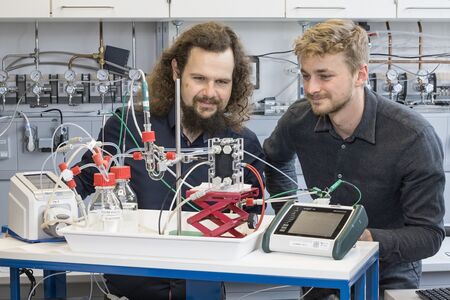 Einen wichtigen Meilenstein auf dem Weg zur praktischen Anwendung haben Quentmeier und Schmid bereits erreicht. Sie haben das Konzept durch zahlreiche Verbesserungen und den Austausch von Komponenten bis zur Stackreife getriebn und in ersten Leistungstests erprobt. Die Ergebnisse der Forschung wurden kürzlich im renommierten Fachmagazin ACS Sustainable Chemical Engineering vorgestellt.
