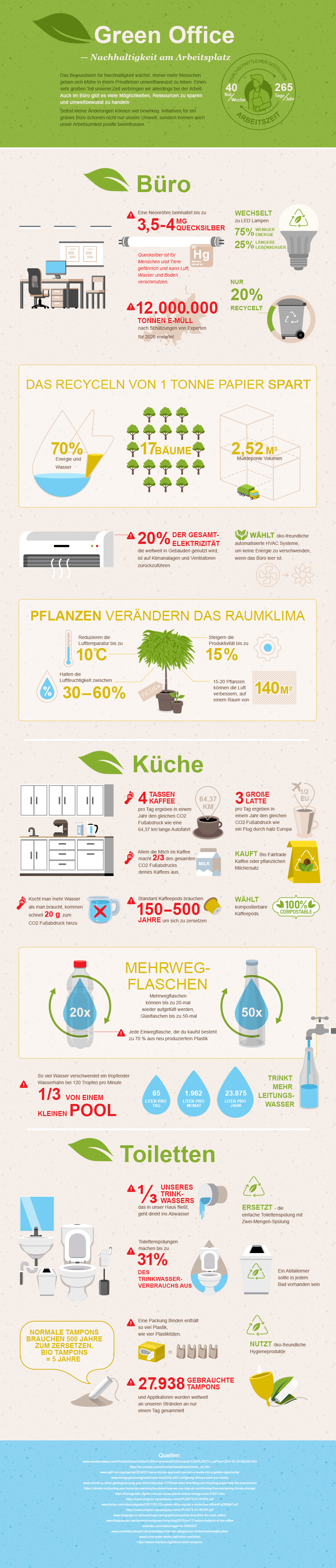 Das Bewusstsein für Nachhaltigkeit wächst. Immer mehr Menschen entscheiden sich in ihrem Alltag für nachhaltigen Konsum und leben umweltbewusst. Warum übertragen wir diese Ideen nicht auch auf unseren Arbeitsplatz? Gespräche mit Kollegen und Vorgesetzten sind der erste Schritt um Initiativen für ein grünes Büro anzustoßen. Von den Veränderungen profitiert nicht nur die Umwelt sondern auch unser Arbeitsumfeld.