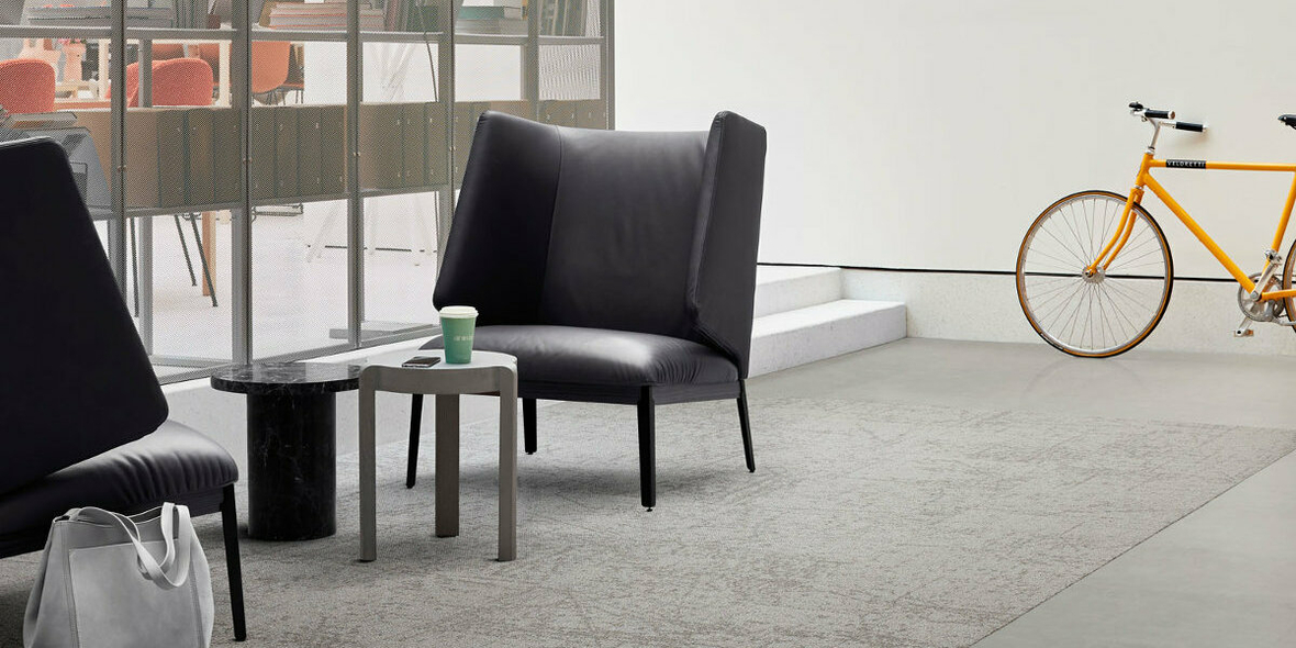 „Uns war zunächst nicht bewusst, dass wir auch mit den Böden noch etwas Besonderes erreichen können“, sagt Sarah Dubbert. Doch durch die Zusammenarbeit mit dem Innenarchitektenbüro Joppich & Rieckhoff lernten die Teams die Teppichfliesen von Interface kennen. „Das biophile Design mit den Sprenkeln steht für Gelassenheit und Klarheit – es ist viel schöner als das übliche graue Einerlei. Darüber hinaus hat uns überzeugt, dass die Fliesen über ihren gesamten Lebenszyklus CO2-neutral sind, recycelte Materialien enthalten und am Ende ihrer Nutzungszeit von Interface wieder in den Kreislauf zurückgeführt werden.“ Auch die Vorteile von Teppichfliesen gegenüber Bahnenware waren ein Argument. So lassen sich zum Beispiel durch Kaffeeflecken verschmutzte Fliesen schnell und unkompliziert austauschen.
