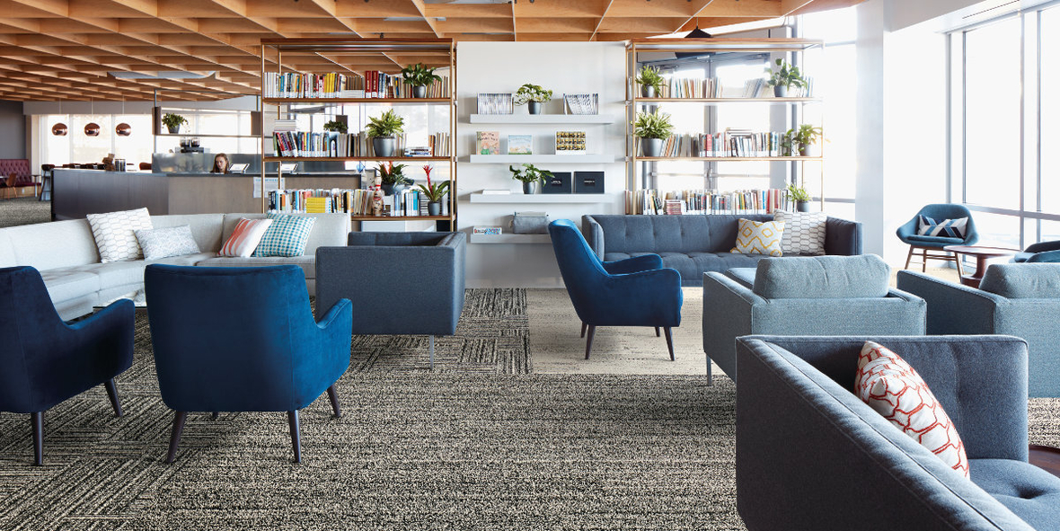 Weitere Pluspunkte der modularen Verlegung: Die unter den Teppichböden liegenden Verkabelungen sind leicht zugänglich und stark beanspruchte Fliesen können einfach ausgetauscht werden.