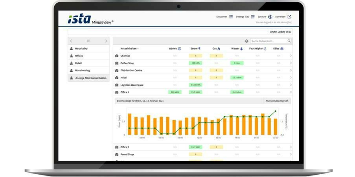 Mit dem digitalen Power Tool „MinuteView“ erweitert der Energiedienstleister ista sein Angebot für Industrie- und Gewerbekunden. Durch den Einsatz der All-in-one-Energiemanagement-Lösung lassen sich bis zu 15 Prozent der Energiekosten eines Unternehmens oder eines Standorts einsparen und so die CO2-Bilanz deutlich verbessern.