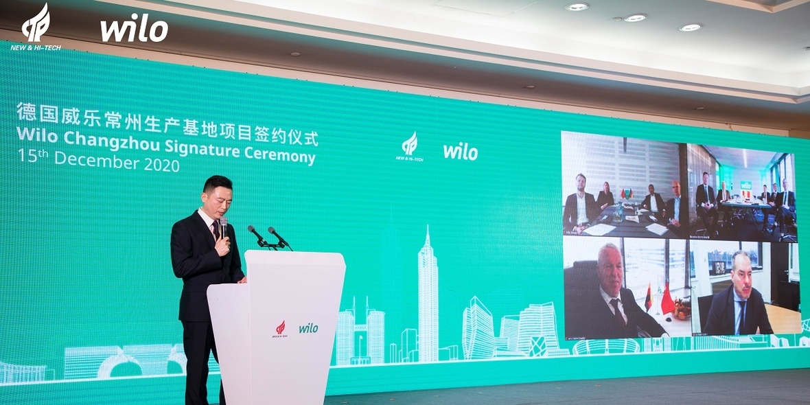 Die Wilo Gruppe investiert in eine neue Hightech-Fabrik in Changzhou, China. Die hybride Unterschriftenzeremonie Mitte Dezember war der offizielle Beginn dieses wichtigen Meilensteins in der Wilo-Geschichte. Mehr als 50 hochrangige Gäste aus China und Deutschland kamen zu der Feier vor Ort und digital mit dem Top-Management des Unternehmens zusammen.