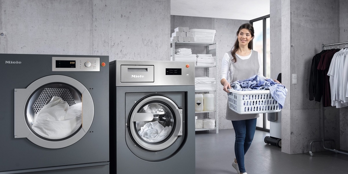 Die gewerblichen Miele-Geräte sind so vielfältig wie die Branchen, für die sie entwickelt wurden. Waschmaschinen, Trockner, Mangeln und professionelle Bügelsysteme bewähren sich zum Beispiel in Hotels und Gaststätten, Pflegeeinrichtungen, bei Gebäudereinigern oder Feuerwehren. Durchschub- und Untertisch-Geschirrspüler haben ihren Platz in der Gastronomie, in Handwerksbetrieben oder im Seniorenheim. Reinigungs-, Desinfektions- und Sterilisationssysteme wurden für Arztpraxen und Labore entwickelt. Auch die komplette Planung und Ausstattung der Aufbereitungseinheiten für Medizinprodukte (kurz: AEMP) großer Krankenhäuser zählt zum Programm. Gebündelt ist dieser Teil des Geschäfts bei dem italienischen Medizintechnikspezialisten Steelco Group, der mit seinen beiden Werken seit 2017 zur Miele Gruppe gehört.