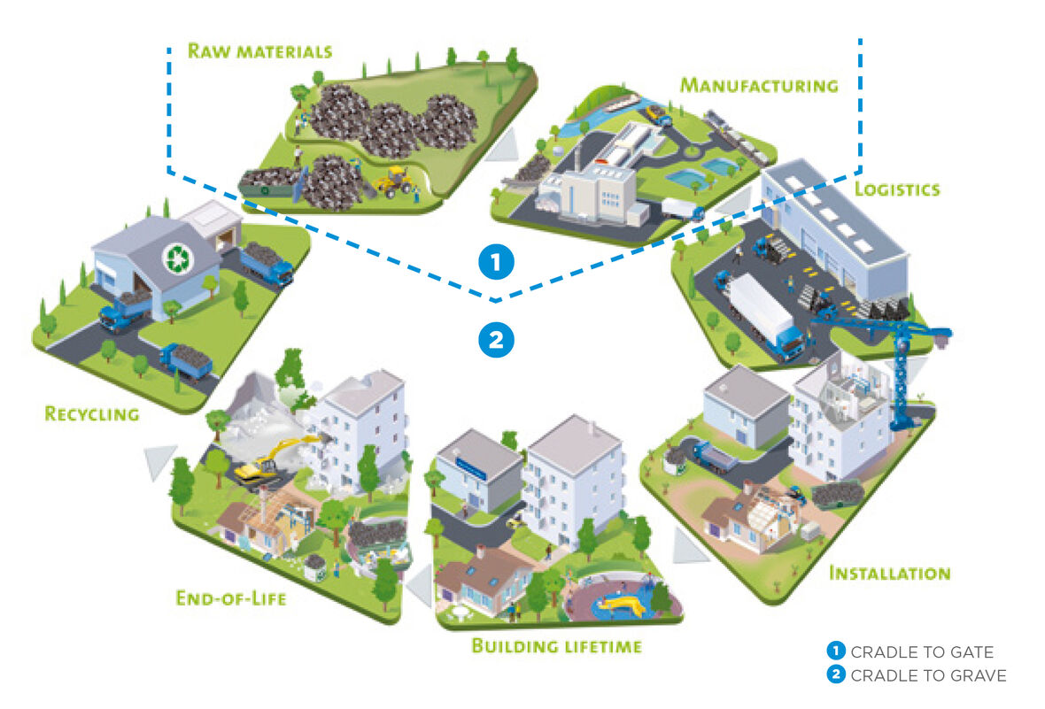 Um die Nachhaltigkeit verschiedener Baumaterialien fundiert zu vergleichen, muss der gesamte Lebenszyklus „Cradle-to-Grave“ betrachtet werden, also von der Herstellung über die Nutzung und Sanierung bis zum Rückbau (Wiederverwendung oder Recycling). Diese Informationen können in Materialpässen zusammengeführt werden. Im Bauwesen bildet unter anderem die freiwillige EPD (Environmental Product Declaration) eine wichtige Informationsquelle für die Bewertung von Materialien im Sinne einer nachhaltigen Gebäudeplanung. Die verifizierte, von unabhängigen Dritten geprüfte Umwelterklärung basiert auf den Normen ISO 25930 und EN 15804 und bietet maximale Transparenz zu Umweltauswirkungen und Nachhaltigkeit von Produkten.