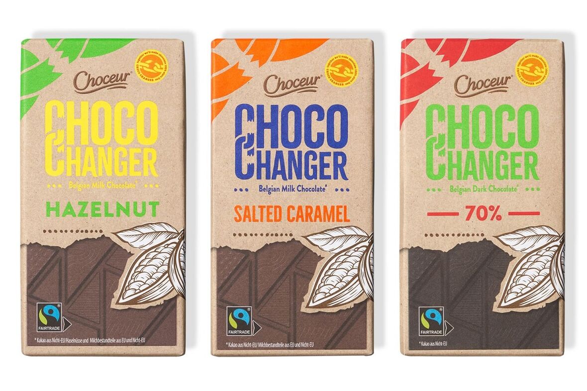 Die Kakaobohnen der Choceur CHOCO CHANGER stammen von Kooperativen in Côte d‘Ivoire und Ghana. Ab sofort ist die nachhaltige Schokolade in den drei Sorten „Hazelnut“, „70 Prozent Dark Chocolate“ und „Salted Caramel“ für einen Preis von je 1,99 Euro in allen ALDI SÜD und ALDI Nord Filialen erhältlich.