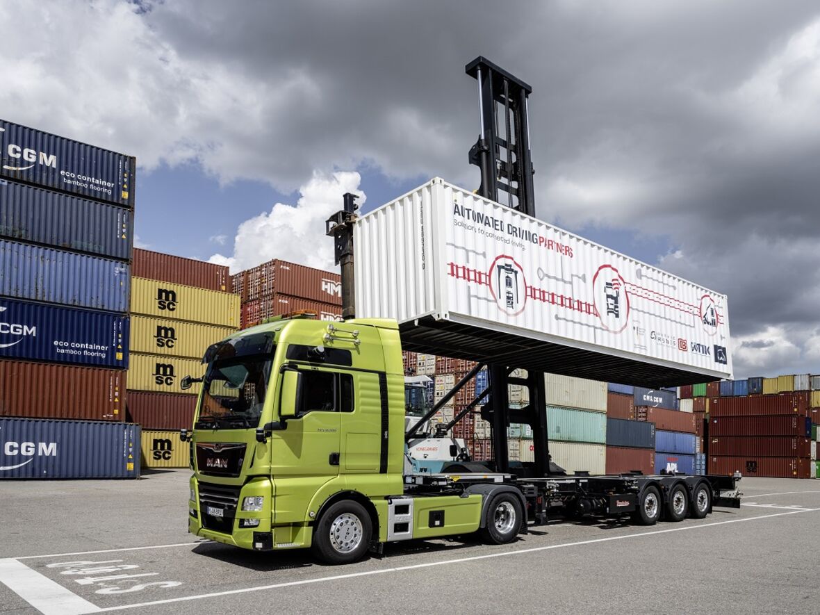 Auf dem Container-Depot von DB Intermodal Services und dem DUSS-Terminal in Ulm ist derweil die erste Etappe des Projekts ANITA (Autonome Innovation im Terminalablauf) abgeschlossen. Hier entwickeln die Projektpartner, zu denen auch MAN gehört, Lösungen für vollautomatisierte Logistikprozesse mit dem autonomen Lkw als zentralem Bestandteil. Zunächst analysierte die Hochschule Fresenius die Verhaltensweisen von Menschen und Maschinen auf dem Terminal. Im nächsten Schritt werden nun die Ergebnisse in digitale Regelwerke und Prozesse überführt und in einen modular aufgebauten Schaltplan für autonome Prozesse umgesetzt.